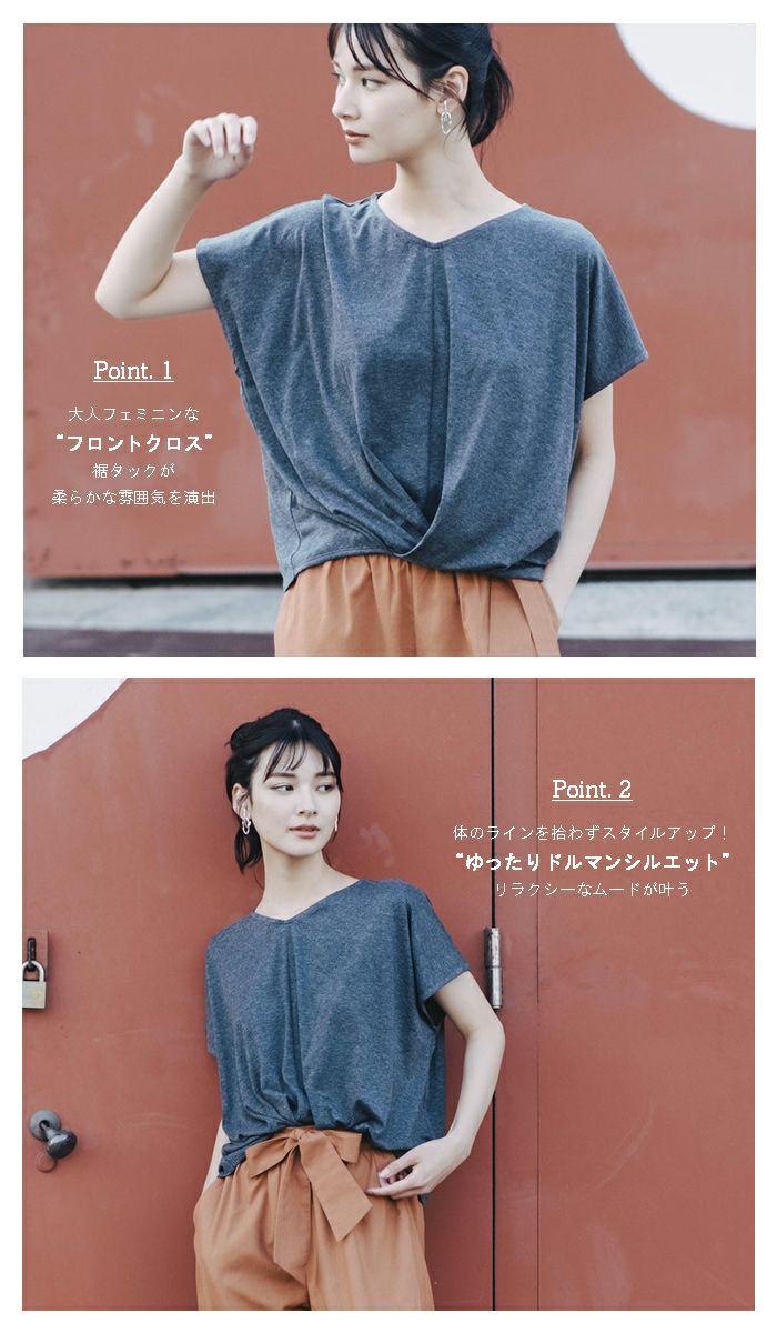 送料無料 フロント裾タックドルマントップス レディース 春夏 半袖 ≪ゆうメール便配送20・代引不可≫ | アクアガレージ aquagarage