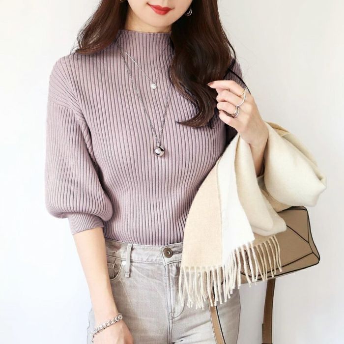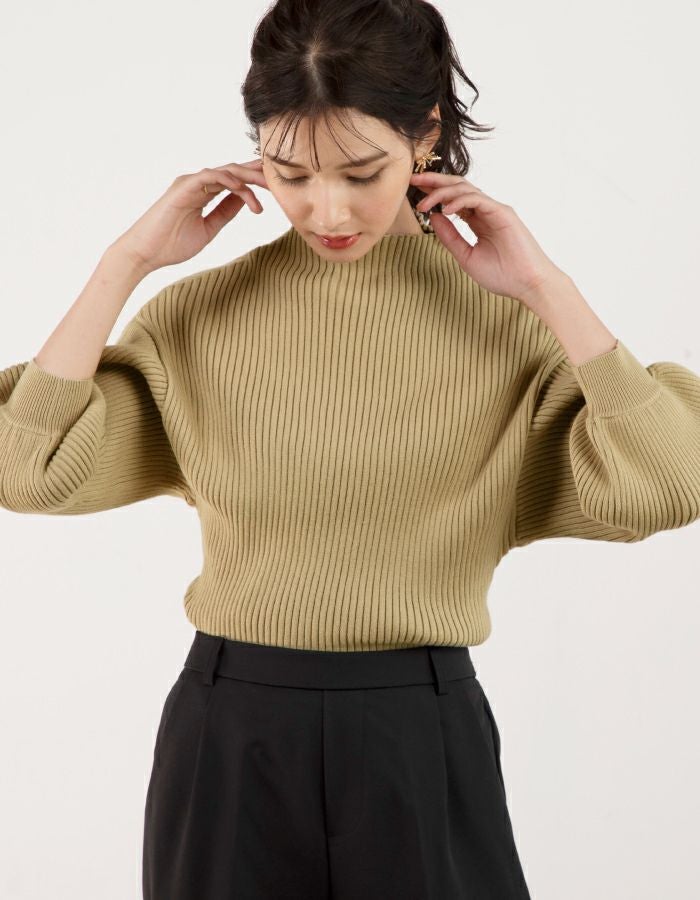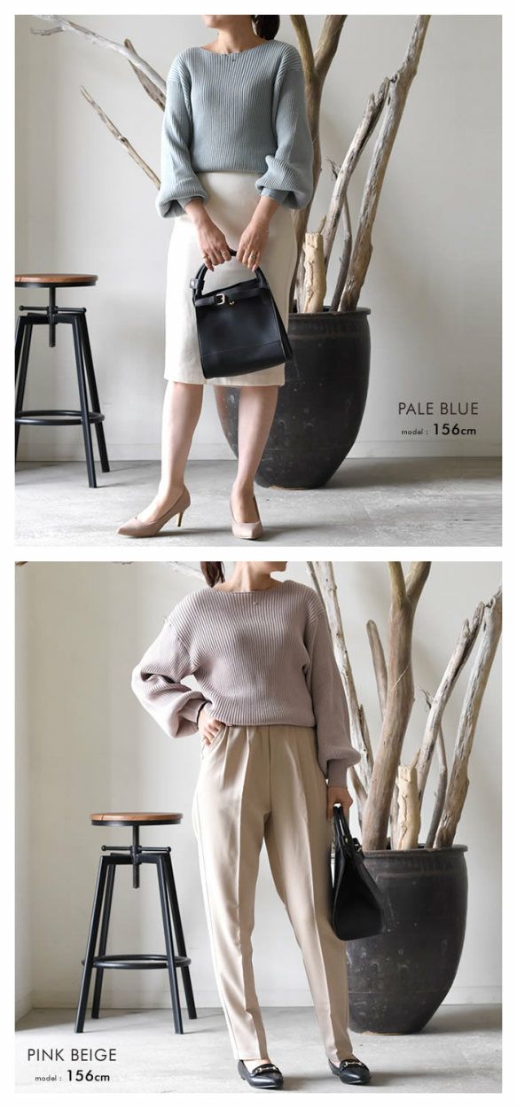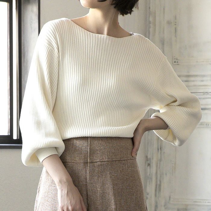 ぽわん袖ニットトップス レディース 春 秋 冬 7分袖 8分袖 M L | アクアガレージ aquagarage