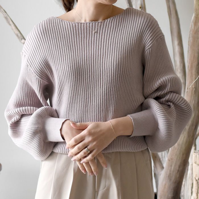 バルーン袖ニットトップス レディース 春 秋 冬 大きいサイズ 長袖 | アクアガレージ aquagarage