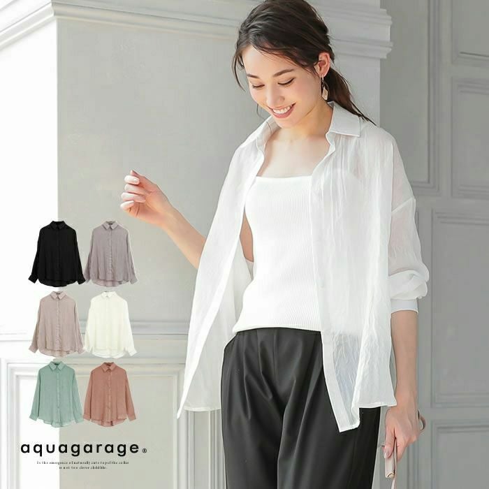 送料無料 バンドカラーロングシアーシャツ レディース 春 夏 秋 長袖 ≪ゆうメール便配送20・代引不可≫ | アクアガレージ aquagarage
