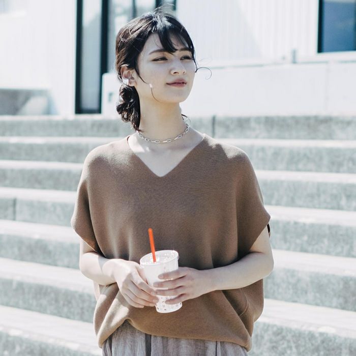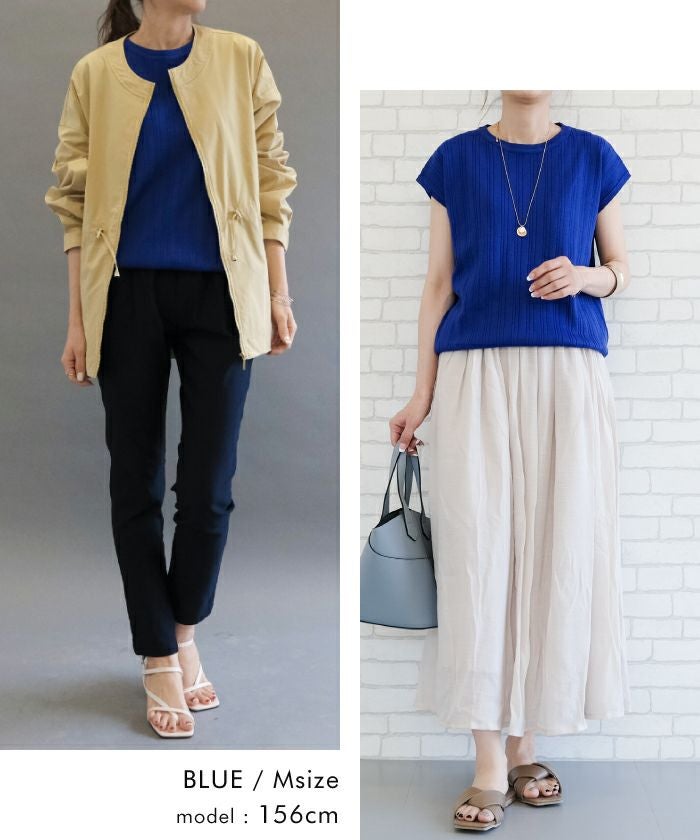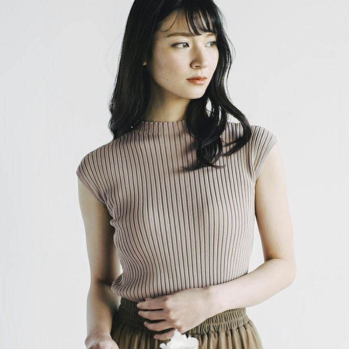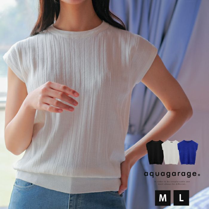 サマーニットトップス レディース 春 夏 半袖 ノースリーブ フレンチスリーブ リブニット ≪ゆうメール便配送10・代引不可≫ | アクアガレージ aquagarage