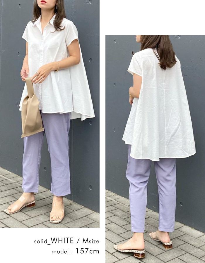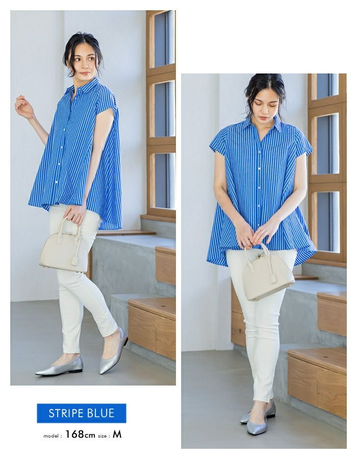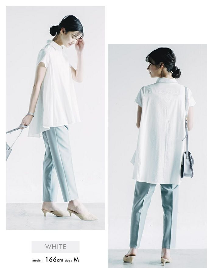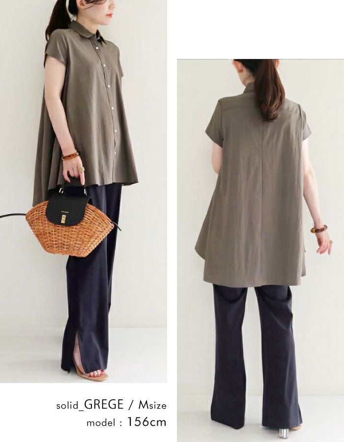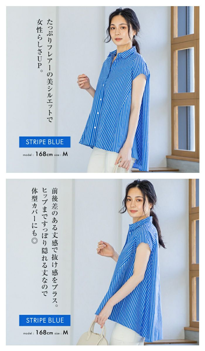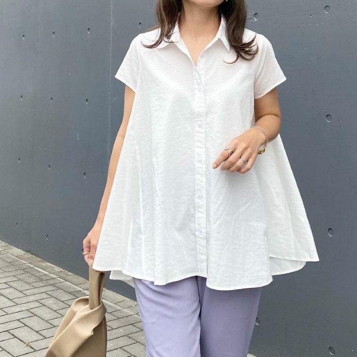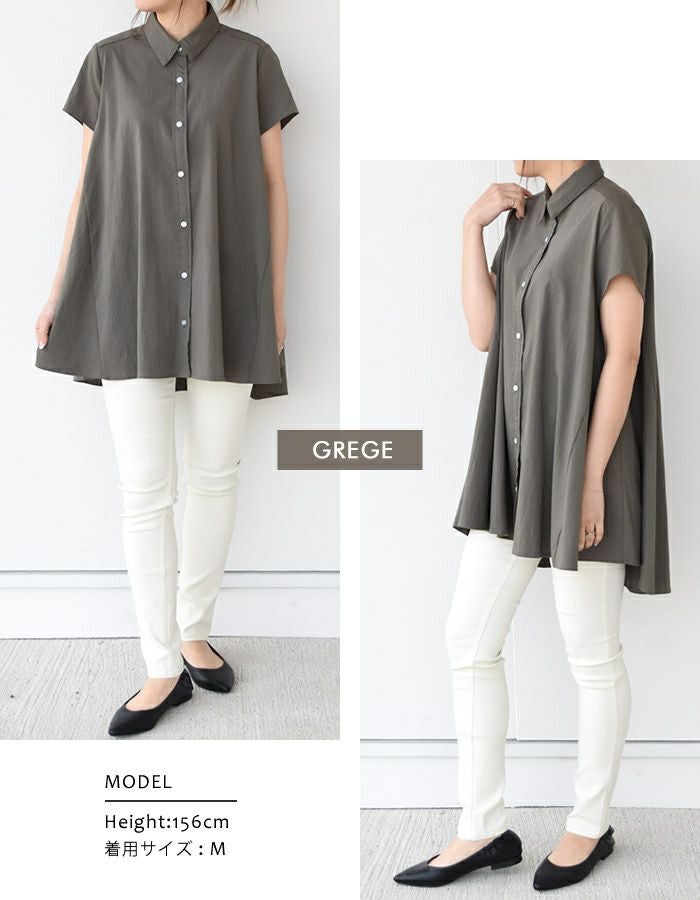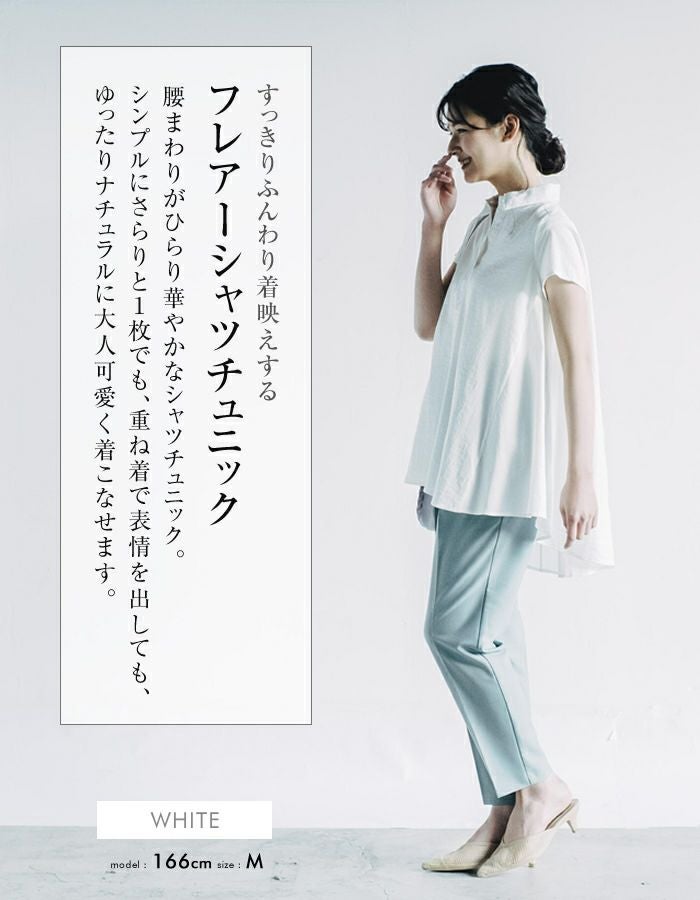 送料無料 フレアーシャツチュニック レディース 春 夏 半袖 M L ≪ゆうメール便配送20・代引不可≫ | アクアガレージ aquagarage