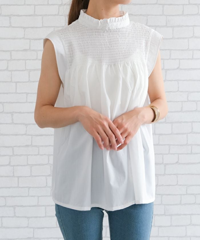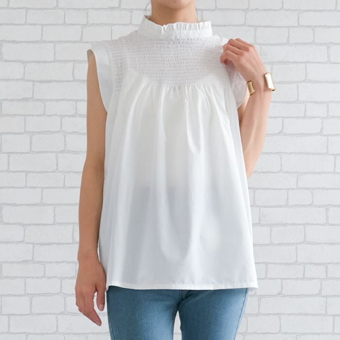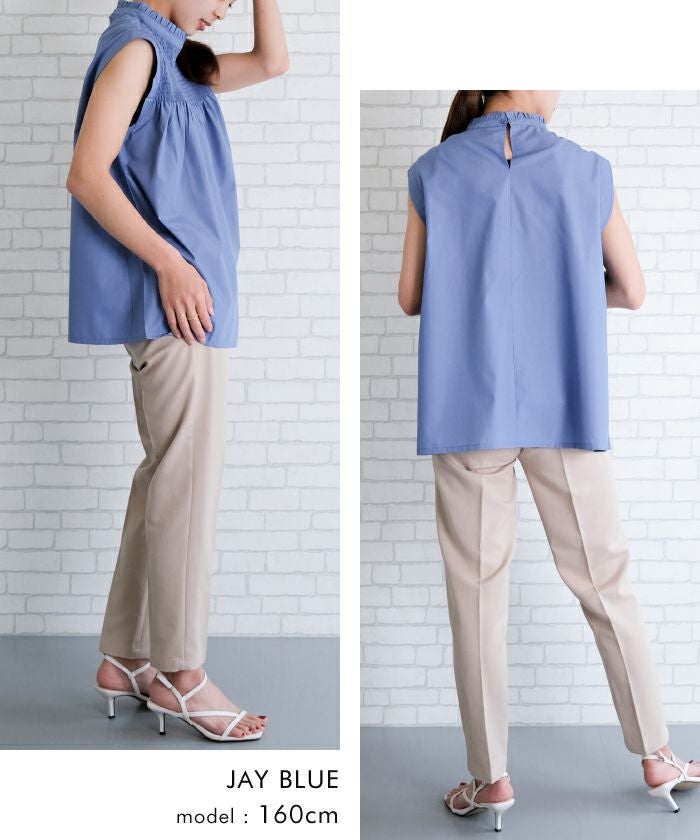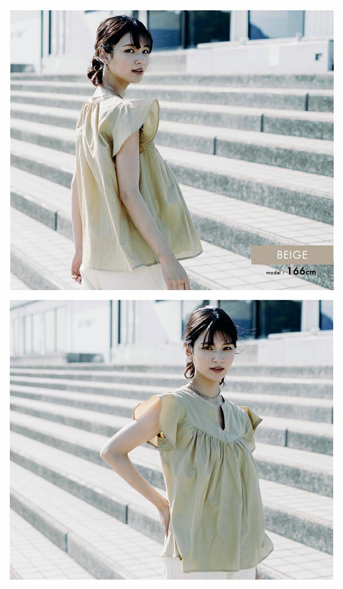 送料無料 デコルテシャーリングノースリーブブラウス 春 夏 秋 M ≪ゆうメール便配送10・代引不可≫ | アクアガレージ aquagarage