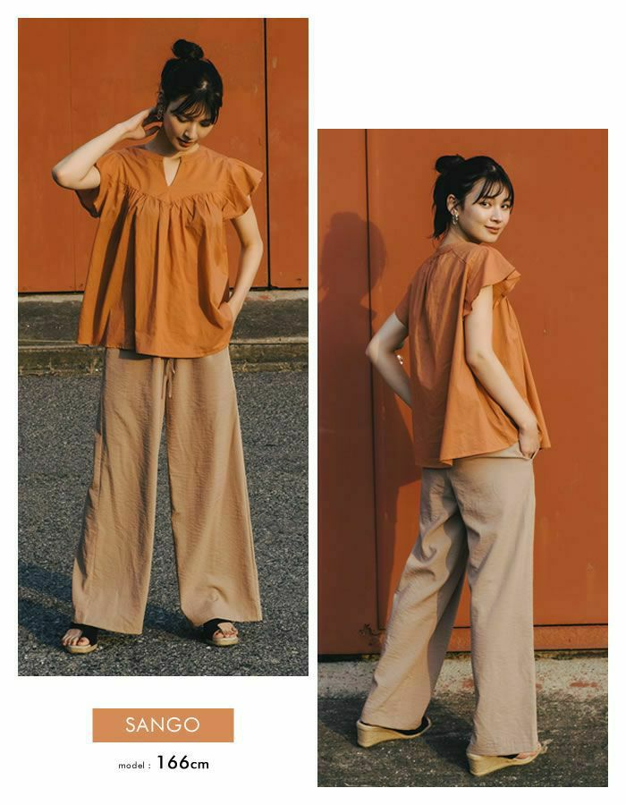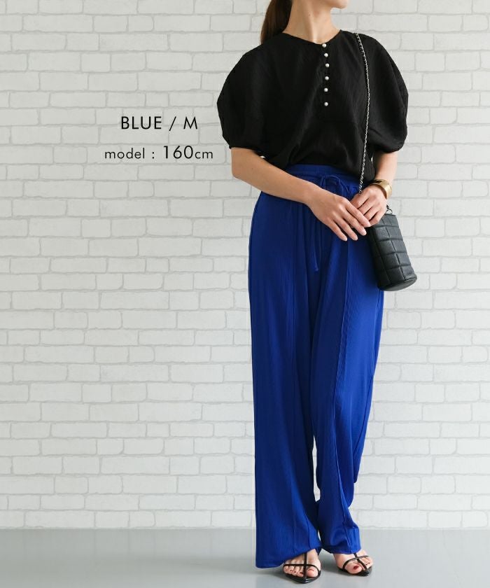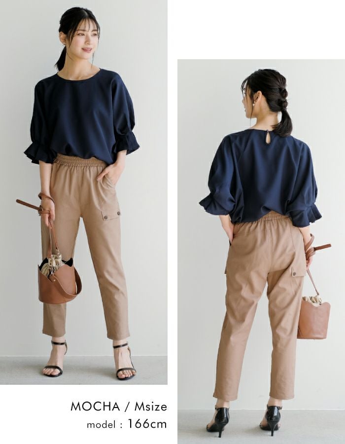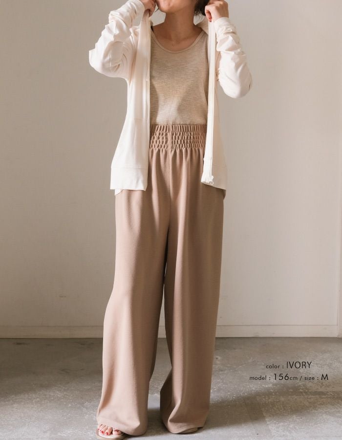 送料無料 ウエストフリルギャザースラブパンツ レディース 春 秋 M L ≪ゆうメール便配送30・代引不可≫| アクアガレージ aquagarage