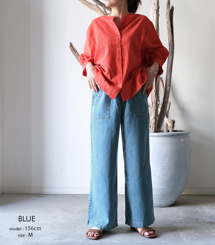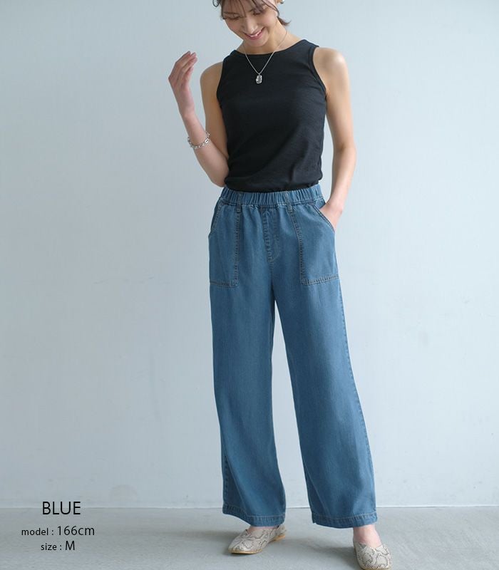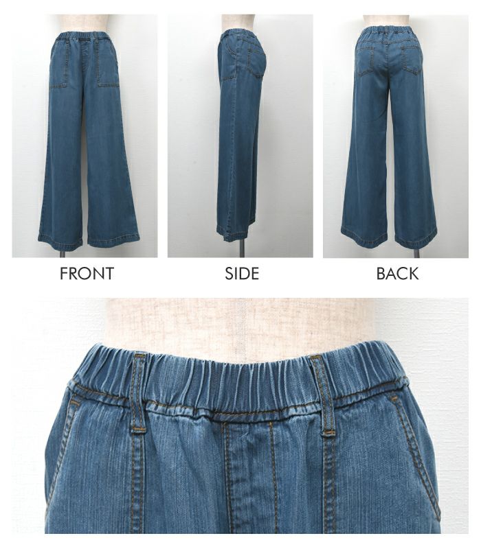送料無料 ベイカーデニムワイドパンツ レディース 春 夏 M L LL 3L ≪ゆうメール便配送30・代引不可≫ | アクアガレージ aquagarage