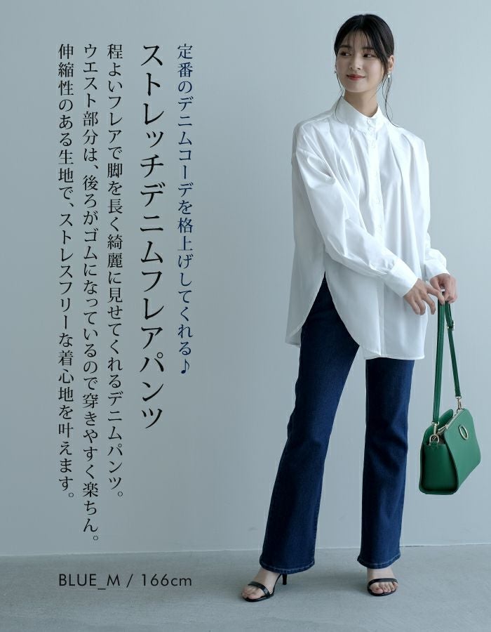 送料無料 ストレッチデニムフレアパンツ レディース M L LL 3L ≪ゆうメール便配送30・代引不可≫ | アクアガレージ aquagarage