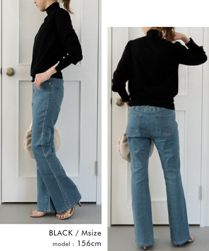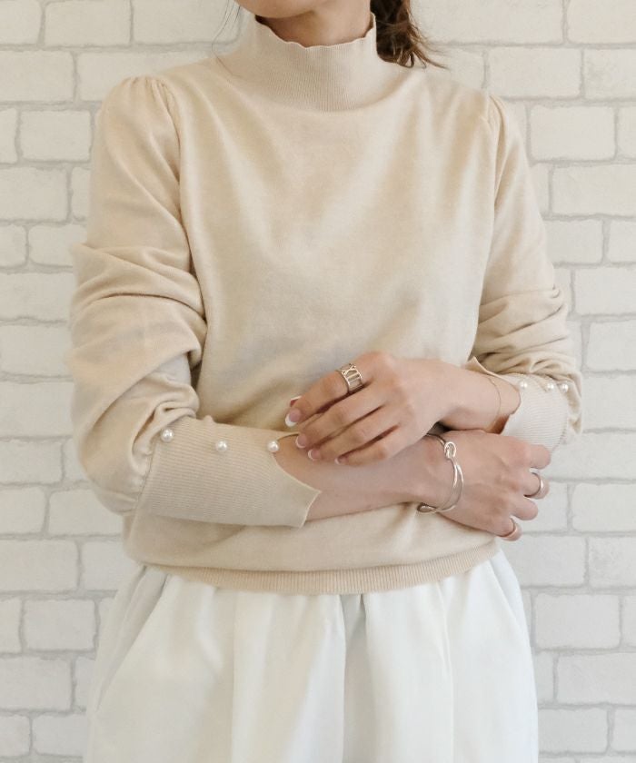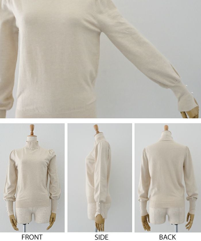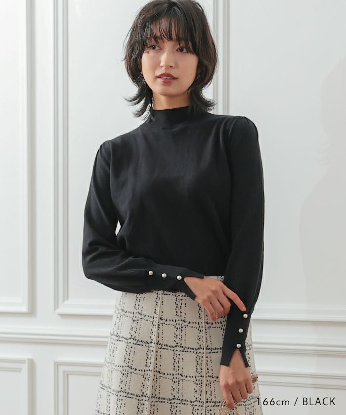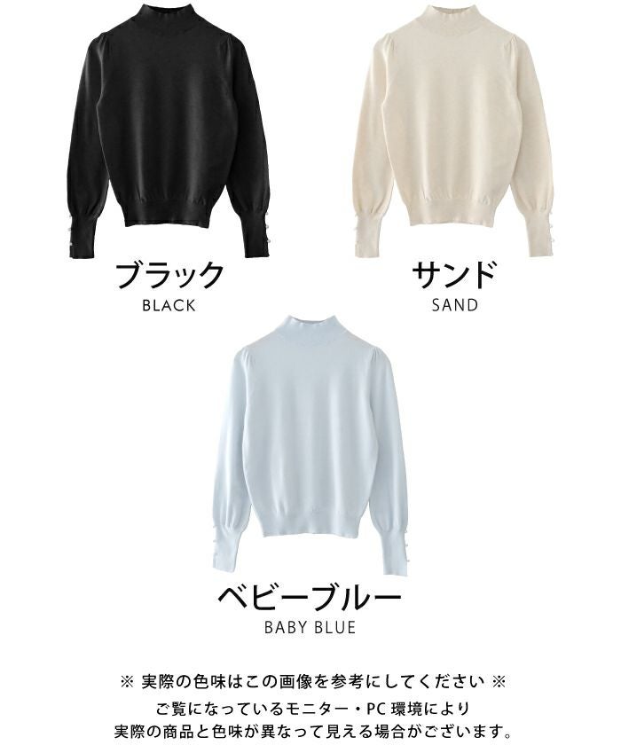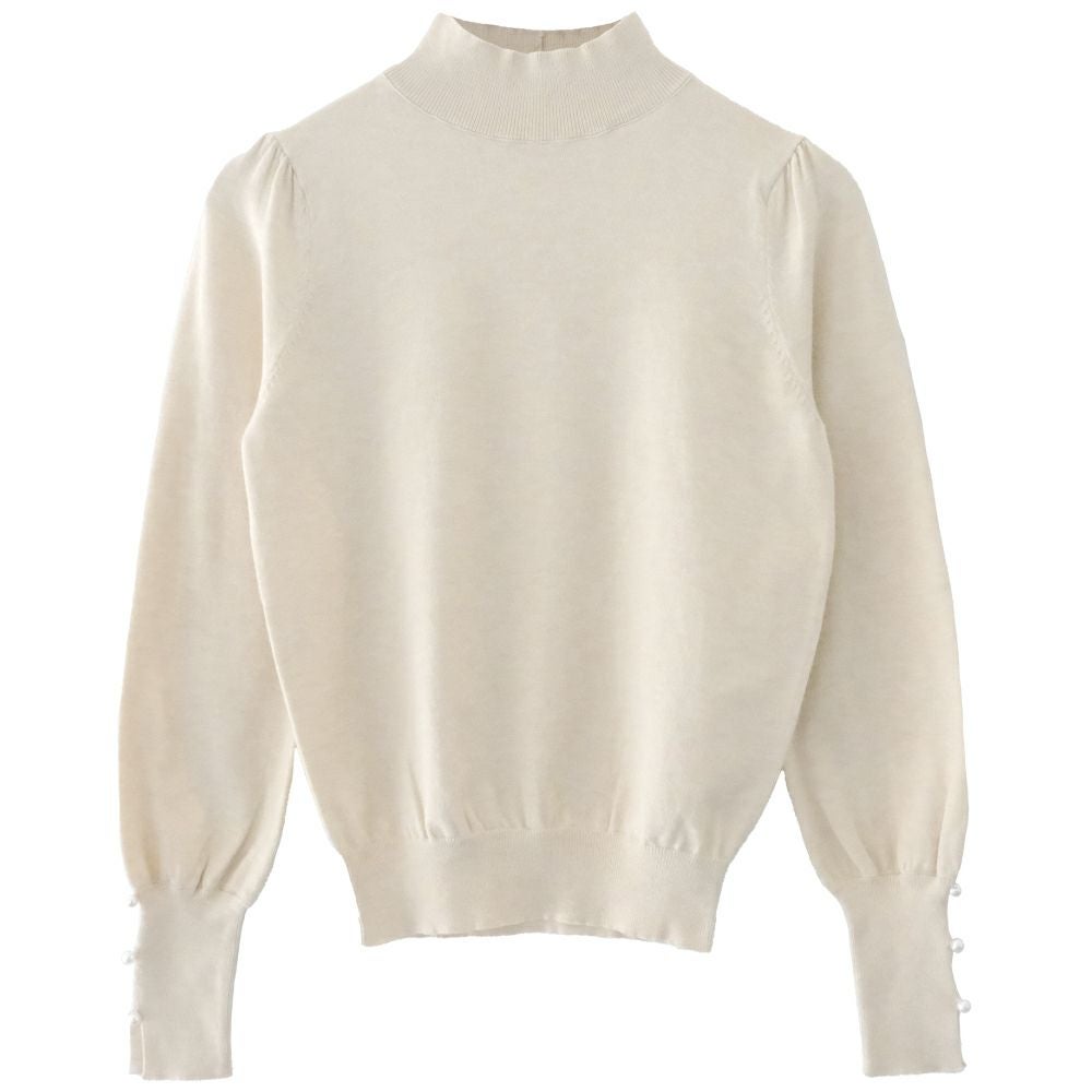送料無料 パールボタン付きプチハイネックニットトップス レディース 春 秋 冬 長袖 M L ≪ゆうメール便配送30・代引不可≫ | アクアガレージ aquagarage