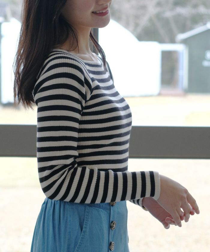 送料無料 ストライプドルマンニット レディース 春 秋 長袖 M L ≪ゆうメール便配送30・代引不可≫ | アクアガレージ aquagarage