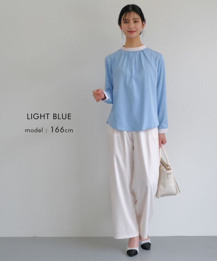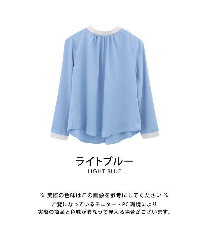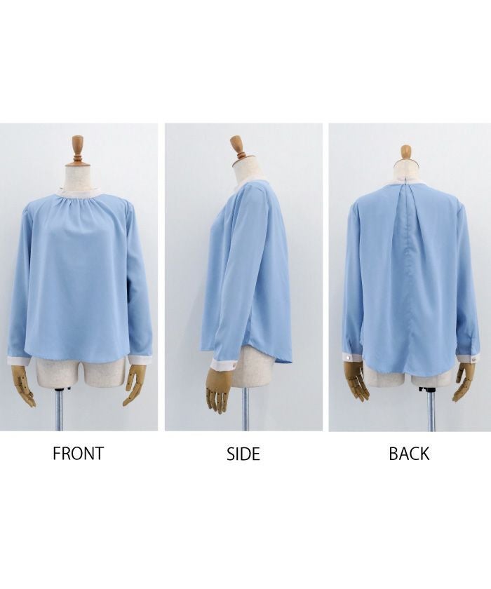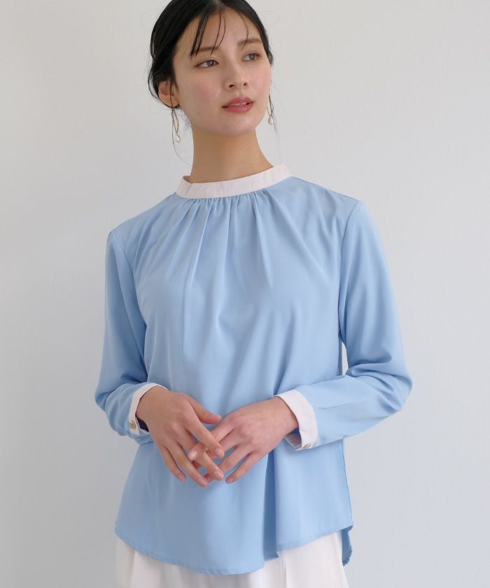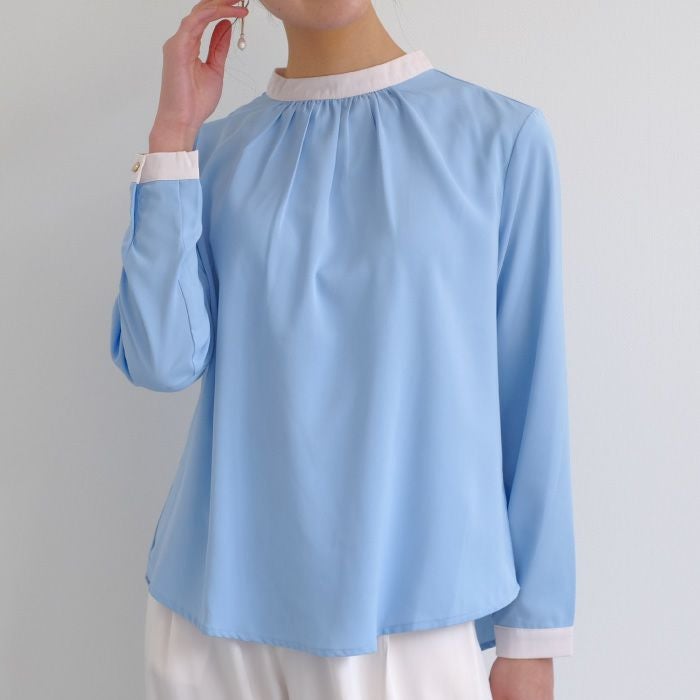 送料無料 【訳ありアウトレット】バイカラーギャザーブラウス レディース 春 秋 長袖 M L ≪ゆうメール便配送20・代引不可≫ | アクアガレージ aquagarage