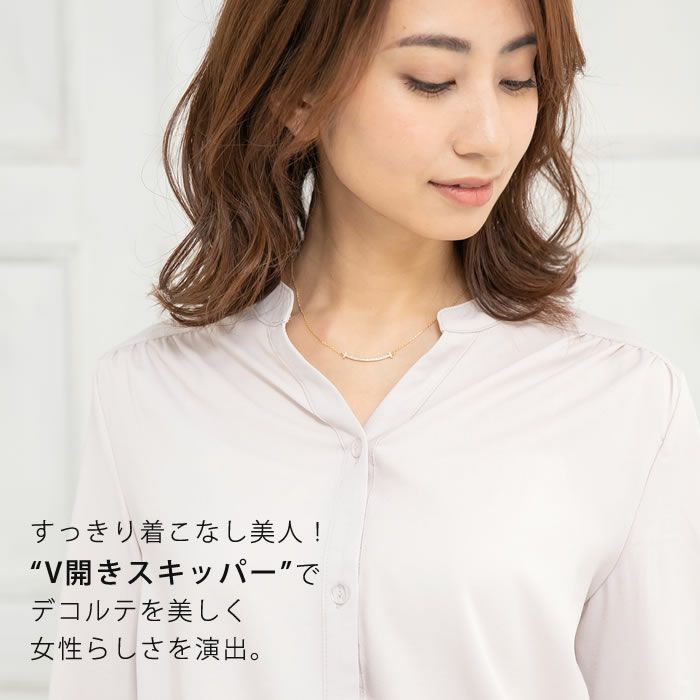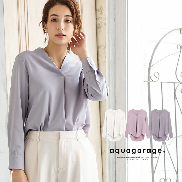 送料無料 スキッパー前開きブラウス レディース 長袖 春 秋 ≪ゆうメール便配送20・代引不可≫ | アクアガレージ aquagarage