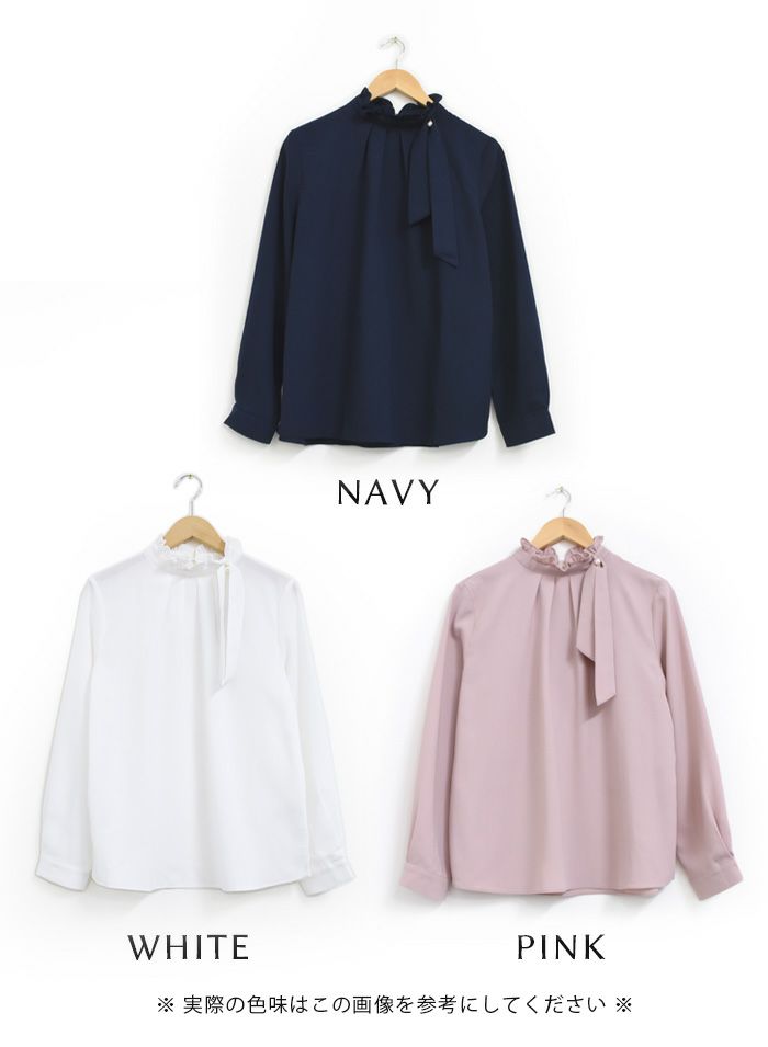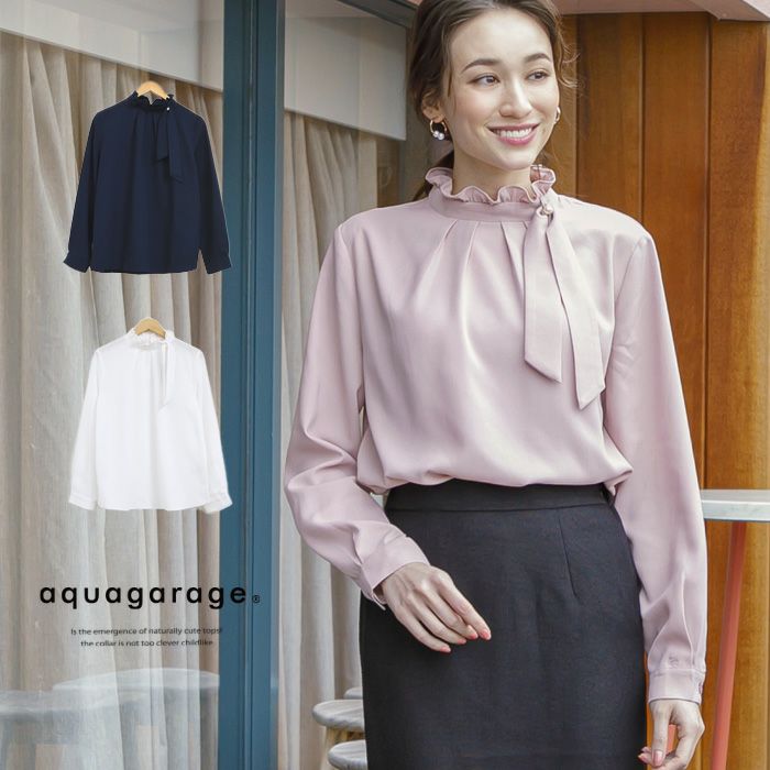 送料無料 フリルスタンドカラーブラウス レディース 春 秋 長袖 M L ≪ゆうメール便配送30・代引不可≫ | アクアガレージ aquagarage