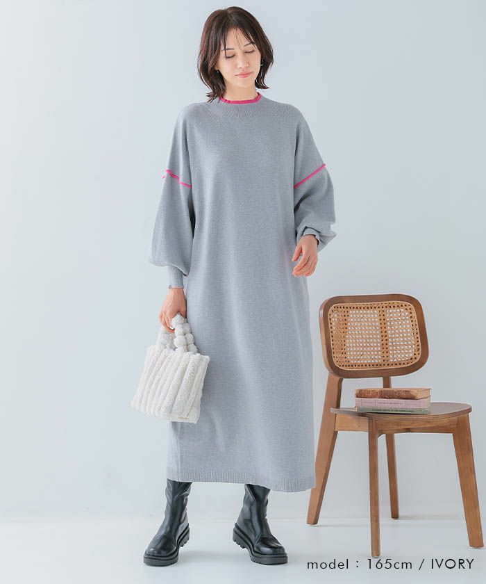 送料無料 【セットアップ可】バルーン袖ニットトップス レディース 春 秋 冬 M L 七分袖 八分袖 ≪ゆうメール便配送30・代引不可≫ | アクアガレージ aquagarage