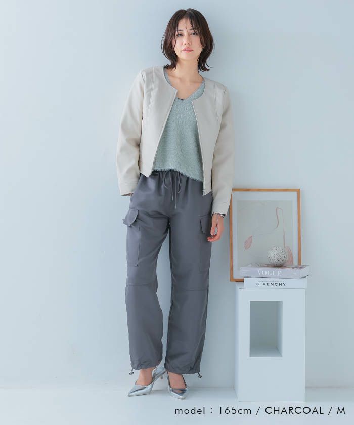 送料無料 梨地ウエストゴムテーパードパンツ レディース 春 夏 秋 M L ≪ゆうメール便配送30・代引不可≫ | アクアガレージ aquagarage