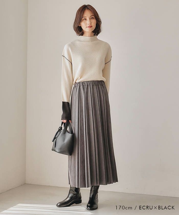 送料無料 ボトルネック配色リブニットトップス 春 秋 冬 M レディース ≪ゆうメール便配送30・代引不可≫ | | アクアガレージ aquagarage