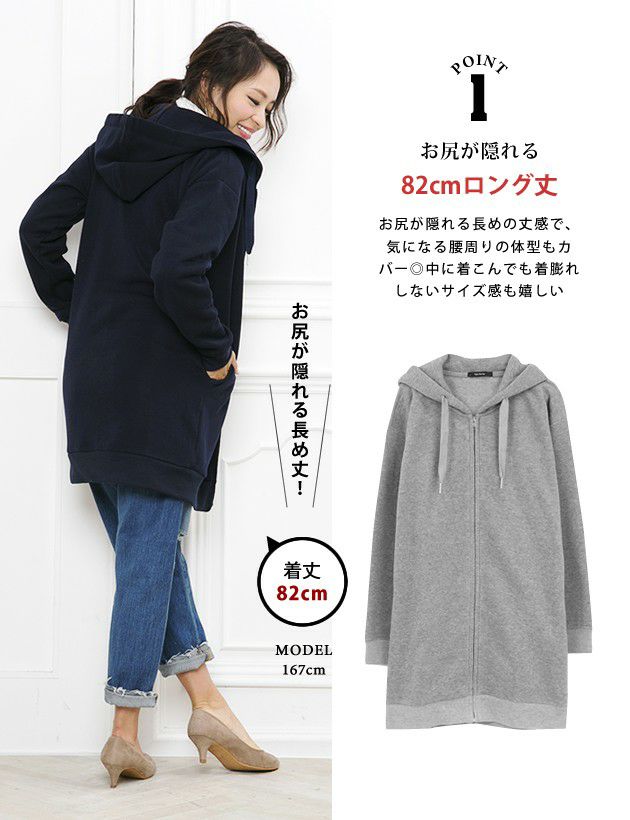 送料無料 裏起毛ロング丈パーカー | アクアガレージ aquagarage 一部予約(11月下旬頃)