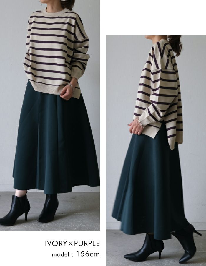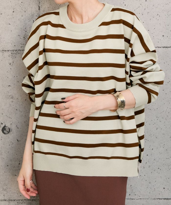 【最終値下げ価格】マルチボーダーニット レディース 秋 冬 長袖 ボリュームスリーブ | アクアガレージ aquagarage