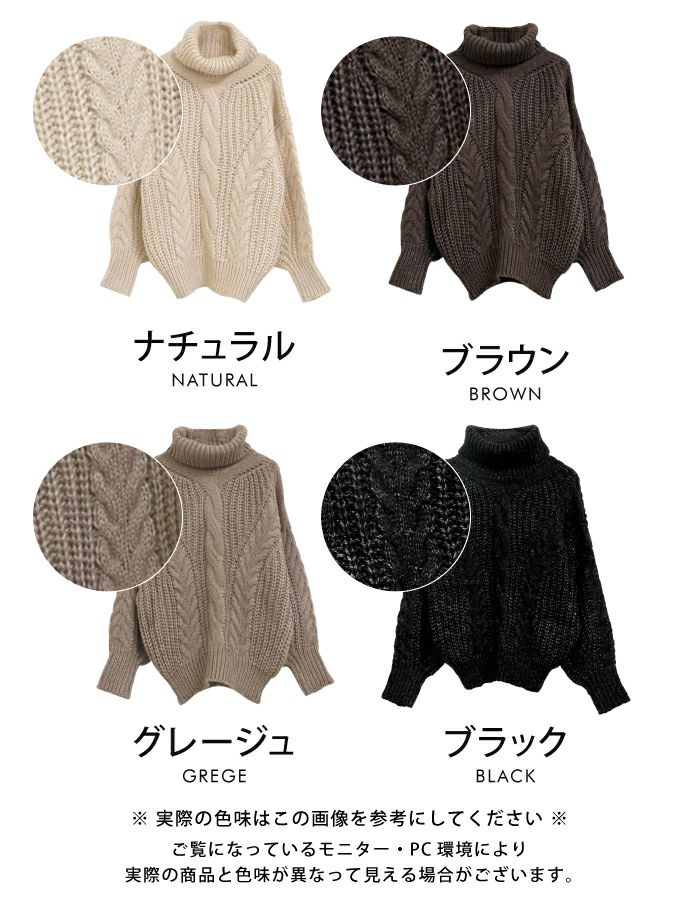 ケーブル編みオフタートルニット レディース 秋 冬 大きいサイズ 長袖 | アクアガレージ aquagarage