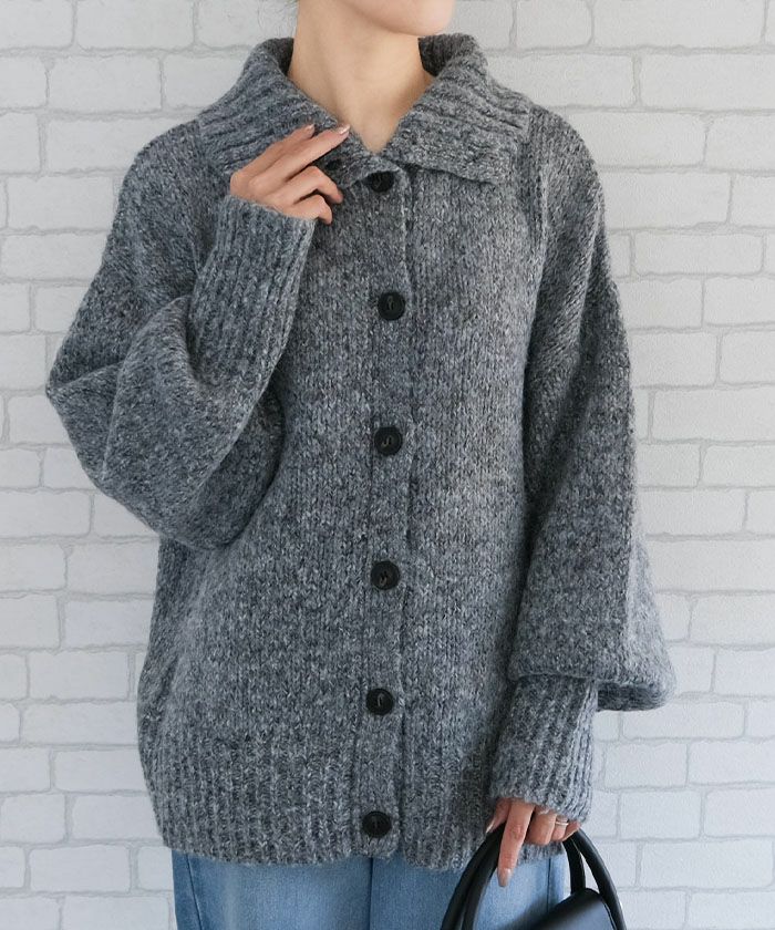 送料無料 ワイドスリーブノーカラーニットジャケット 秋 冬 M レディース | アクアガレージ aquagarage