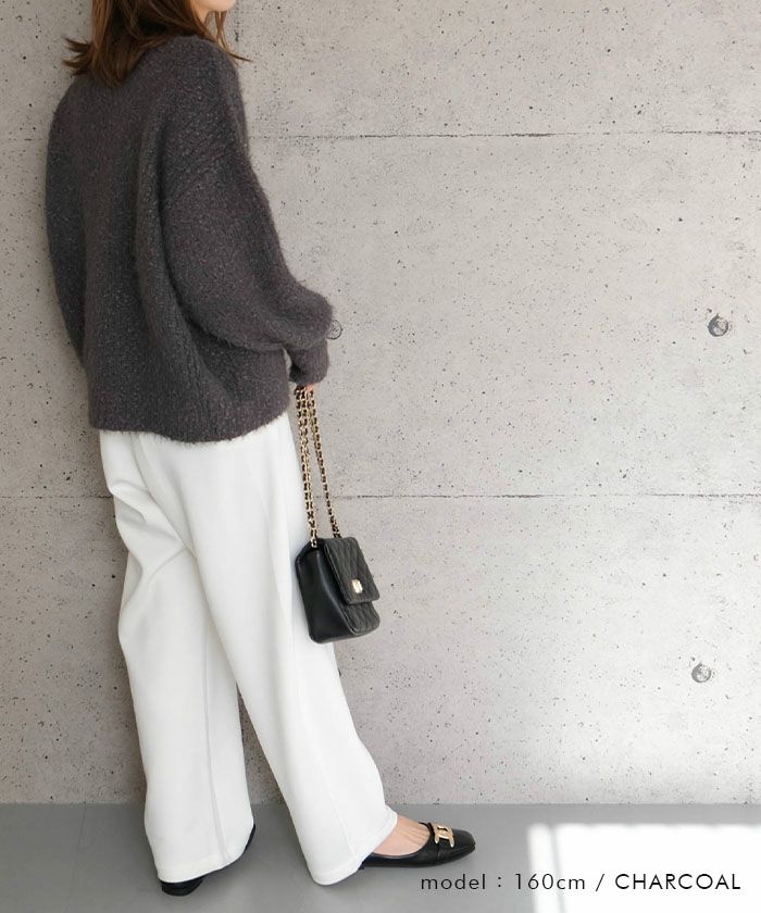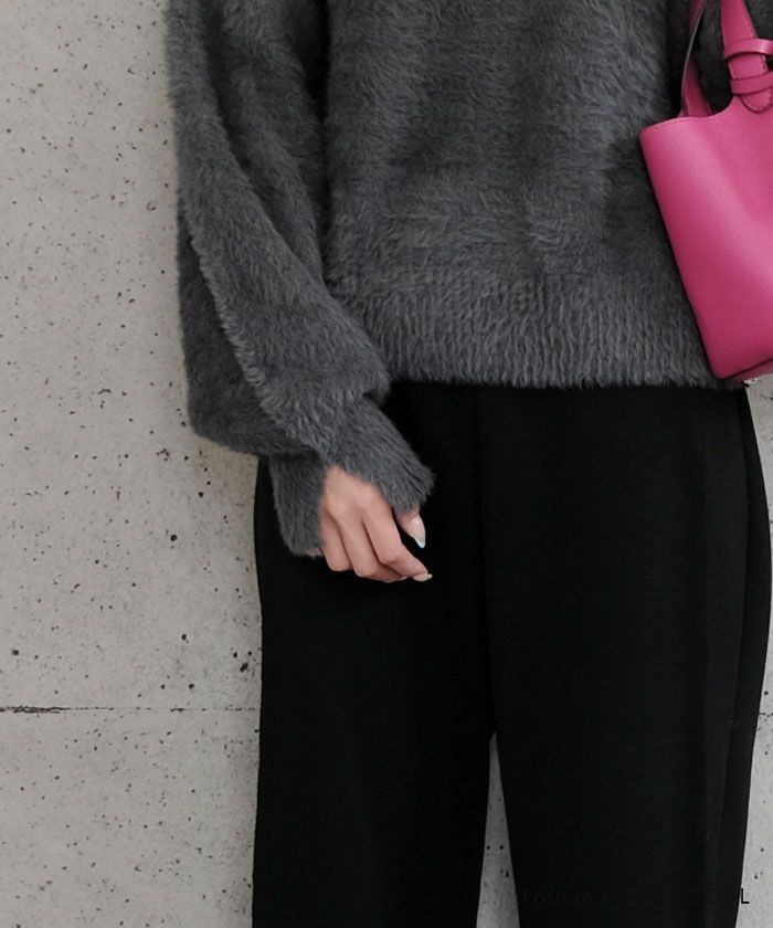 送料無料 シャギーニットラウンドネックトップス レディース 春 秋 冬 | アクアガレージ aquagarage