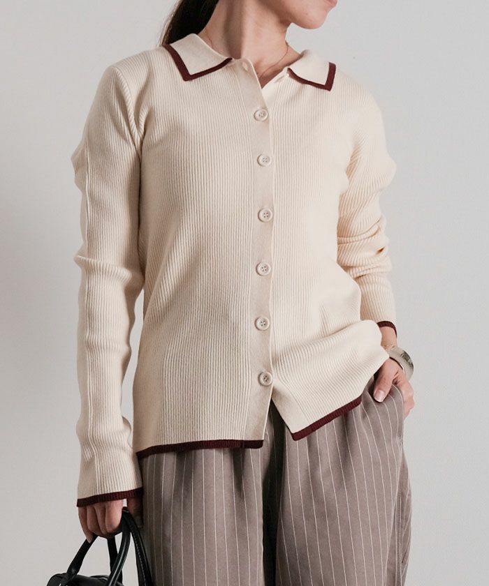 送料無料 襟付きリブニットバイカラーカーディガン 春 秋 冬 M レディース≪ゆうメール便配送30・代引不可≫ | アクアガレージ aquagarage