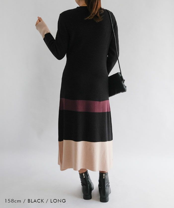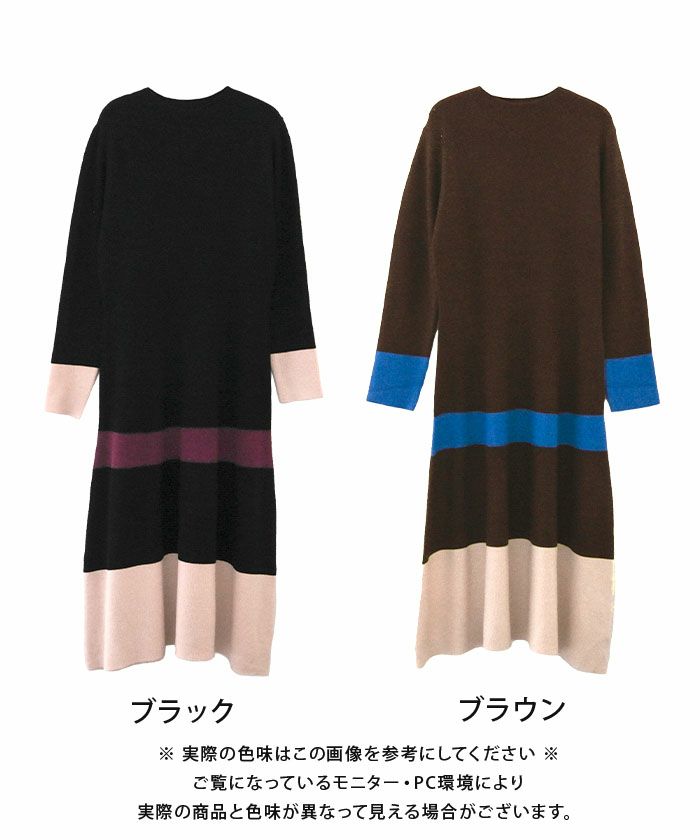 送料無料 ミラノリブ配色ロングワンピース レディース 秋 冬 | アクアガレージ aquagarage