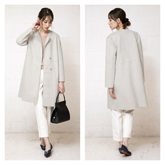 【最終値下げ価格】スエードボンディングノーカラーコート レディース ロング丈 長袖 M L | アクアガレージ aquagarage