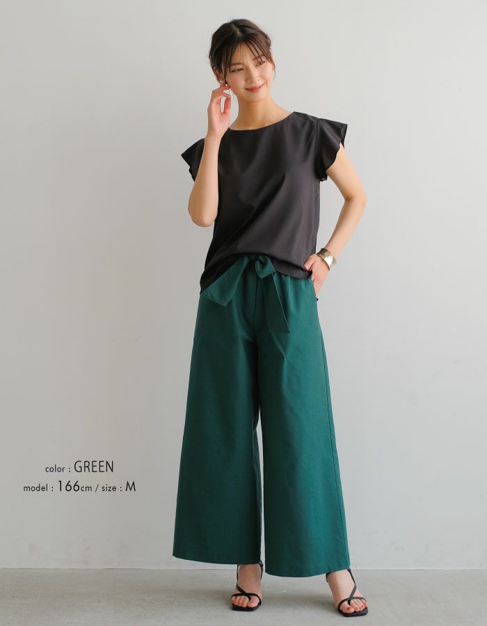 送料無料 クロップド丈リネンブレンド美脚ワイドパンツ ≪ゆうメール便配送30・代引不可≫ | アクアガレージ aquagarage