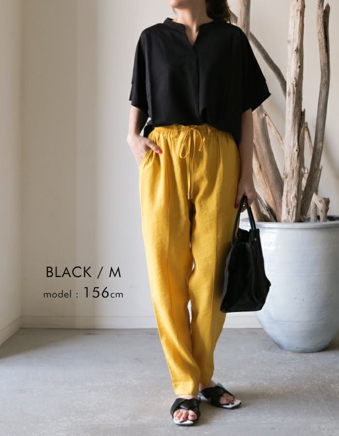 送料無料 リネンライクタックカーブパンツ レディース 春 秋 M ≪ゆうメール便配送20・代引不可≫|アクアガレージ aquagarage
