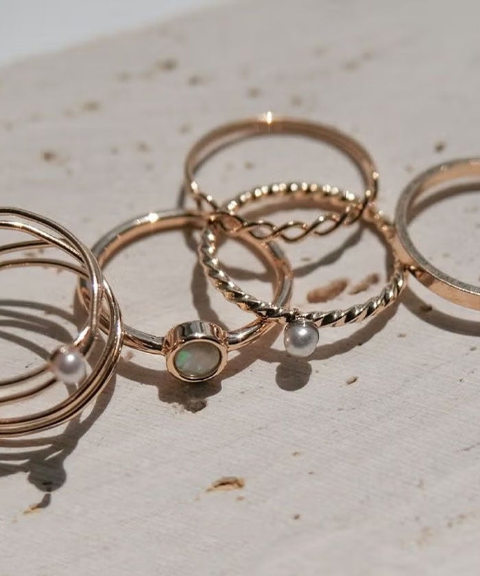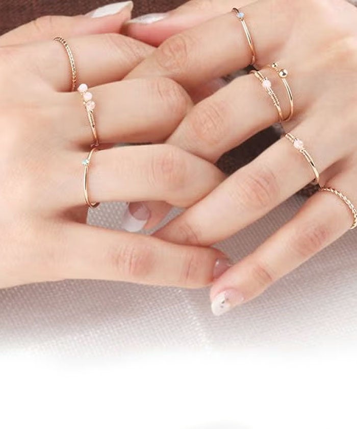 【999円祭り】8個セットのビジュー付き華奢リング | アクアガレージ aquagarage