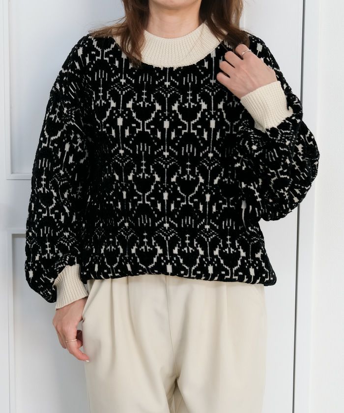Vネック袖配色オーバーニットトップス レディース 春 秋 冬 | アクアガレージ aquagarage