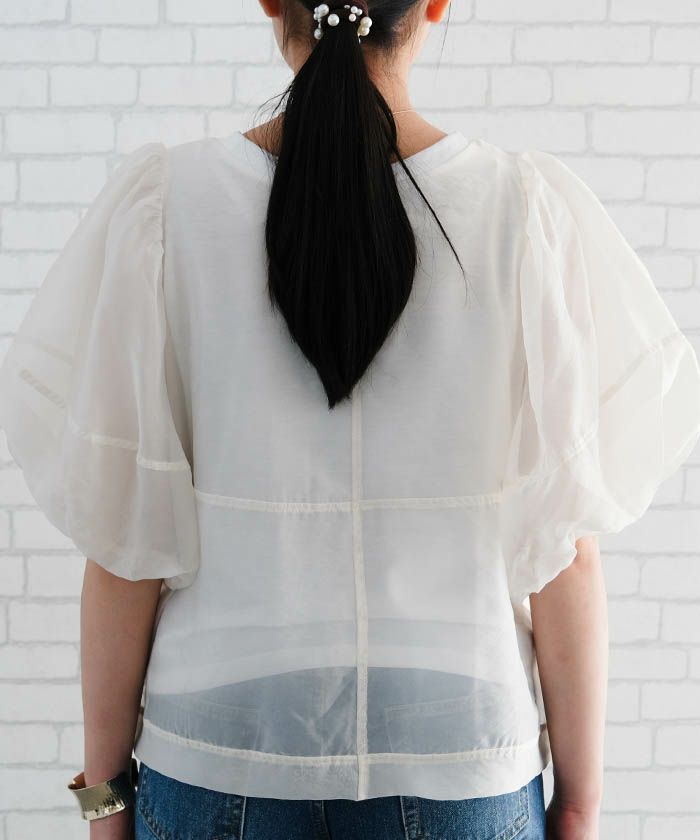 送料無料 オーガンジー袖バルーントップス 春 夏 秋 ≪ゆうメール便配送20・代引不可≫| アクアガレージ aquagarage
