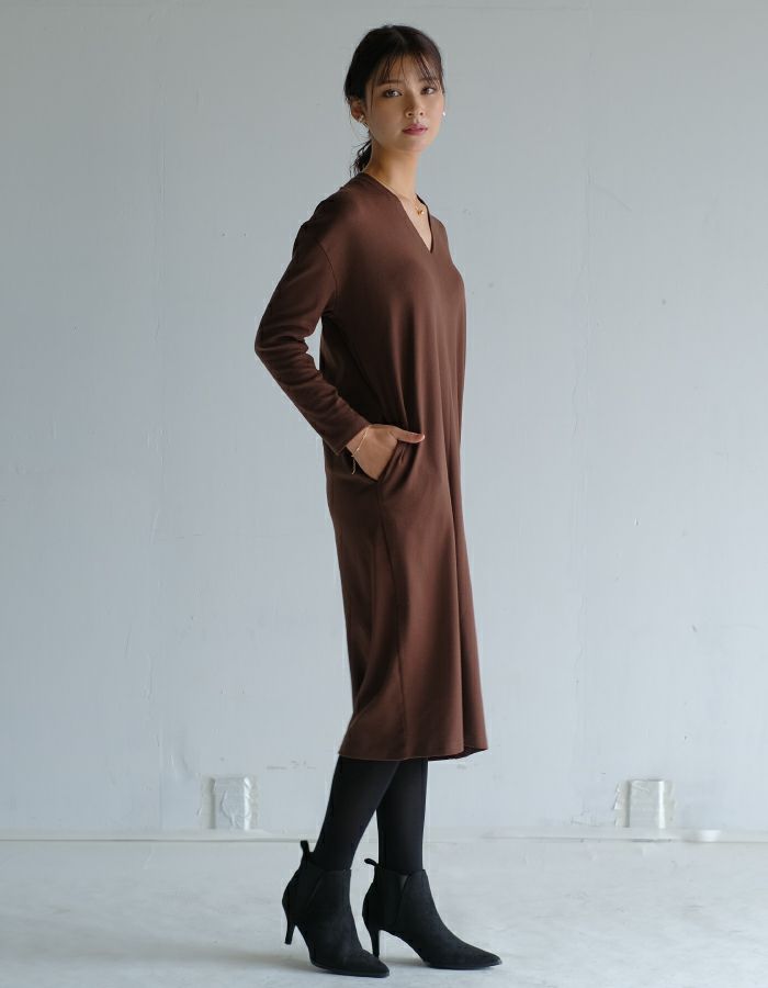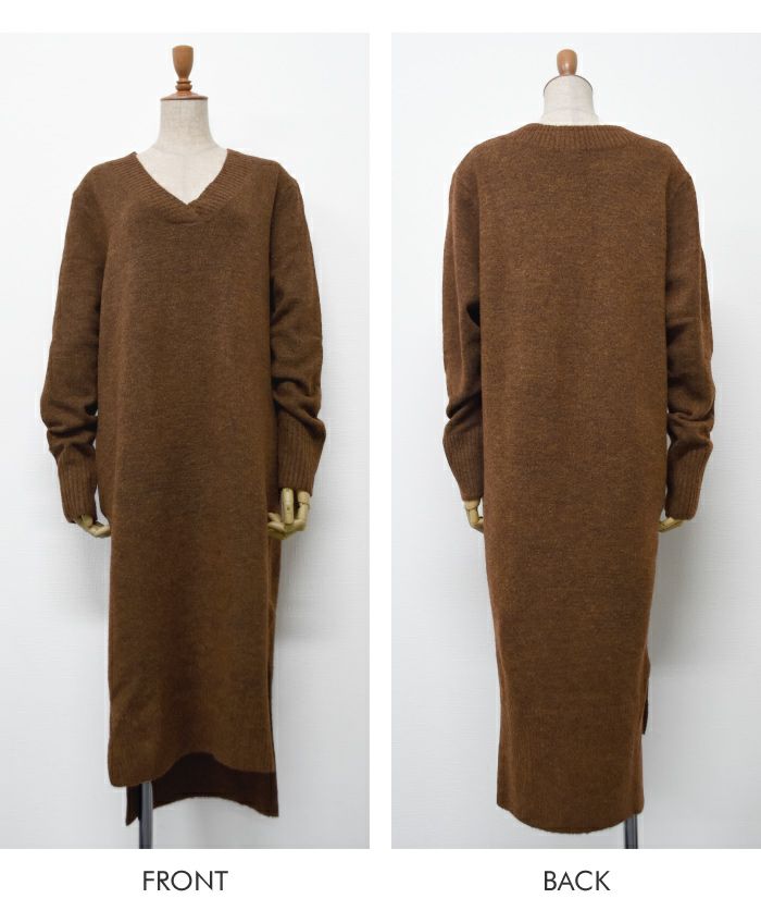 【最終値下げ価格】サイドスリットニットワンピース レディース 秋 冬 深Vネック | アクアガレージ aquagarage