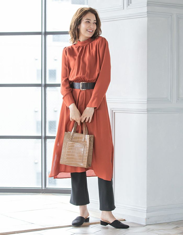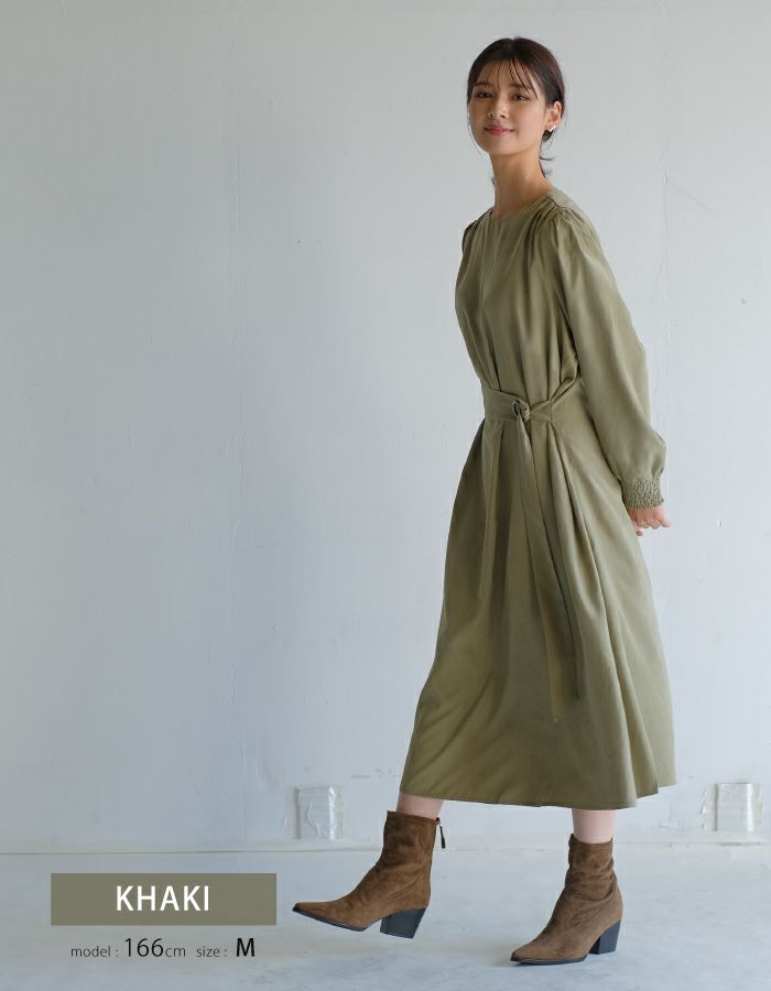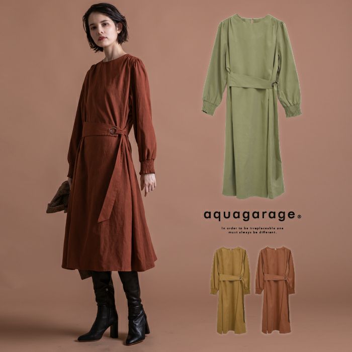 【最終値下げ価格】ウエストベルトAラインワンピース レディース 春 秋 長袖 ロング丈 | アクアガレージ aquagarage