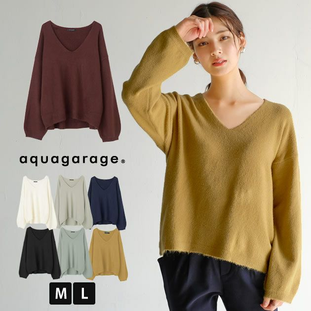 【最終値下げ価格】ボリューム袖Vネックニットトップス M L | アクアガレージ aquagarage