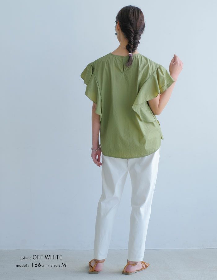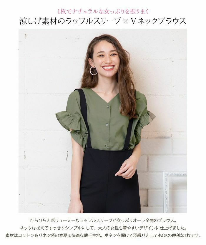 送料無料 涼しげ素材のラッフルスリーブVネックブラウス ≪ゆうメール便配送10・代引不可≫ | アクアガレージ aquagarage