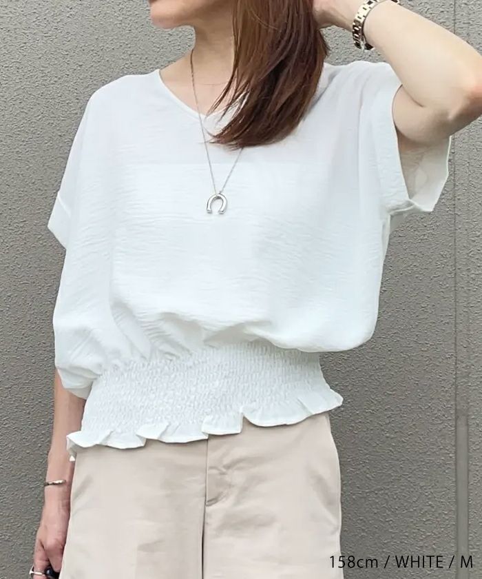 送料無料 ウエストシャーリング深Vネックブラウス ≪ゆうメール便配送20・代引不可≫ | アクアガレージ aquagarage