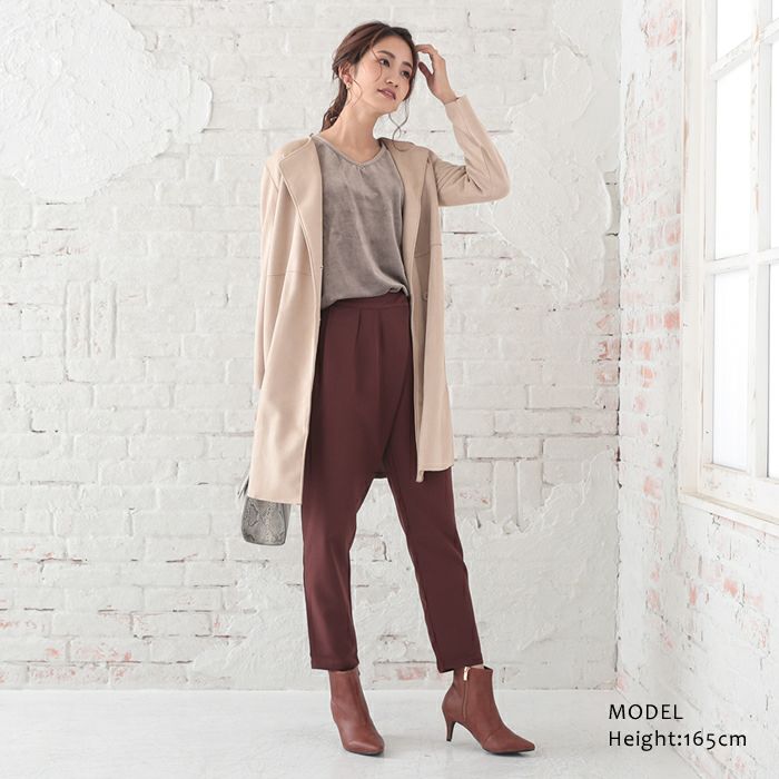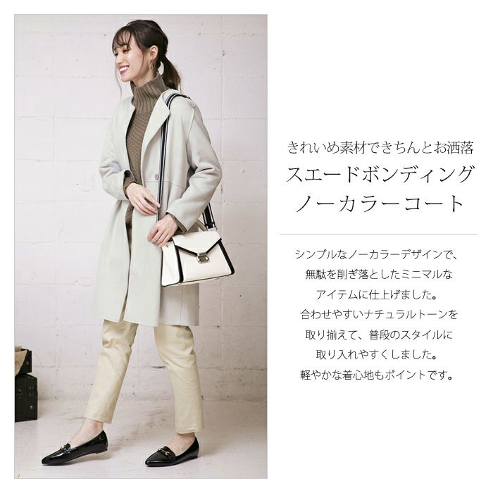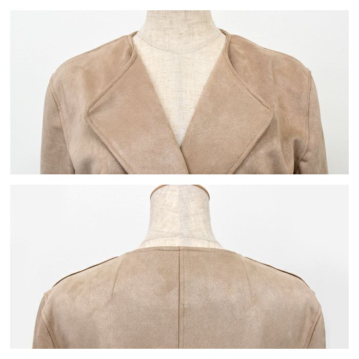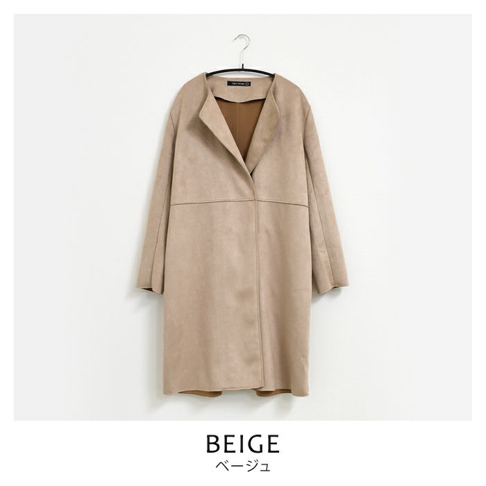 【最終値下げ価格】スエードボンディングノーカラーコート レディース ロング丈 長袖 M L | アクアガレージ aquagarage