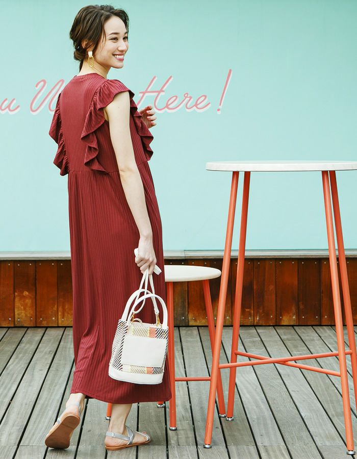 送料無料 ポンチ素材深めスリットワンピース | アクアガレージ aquagarage