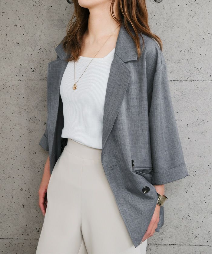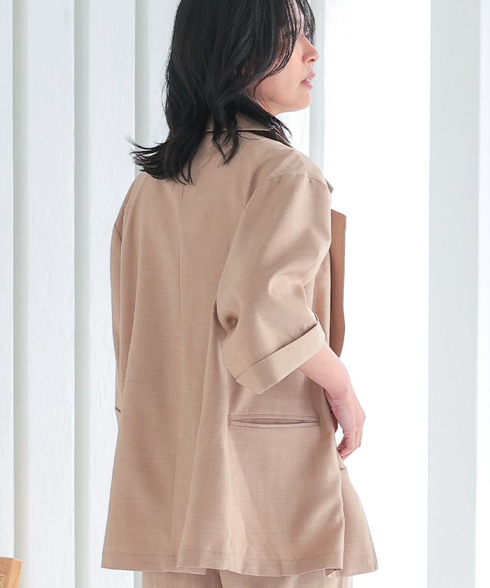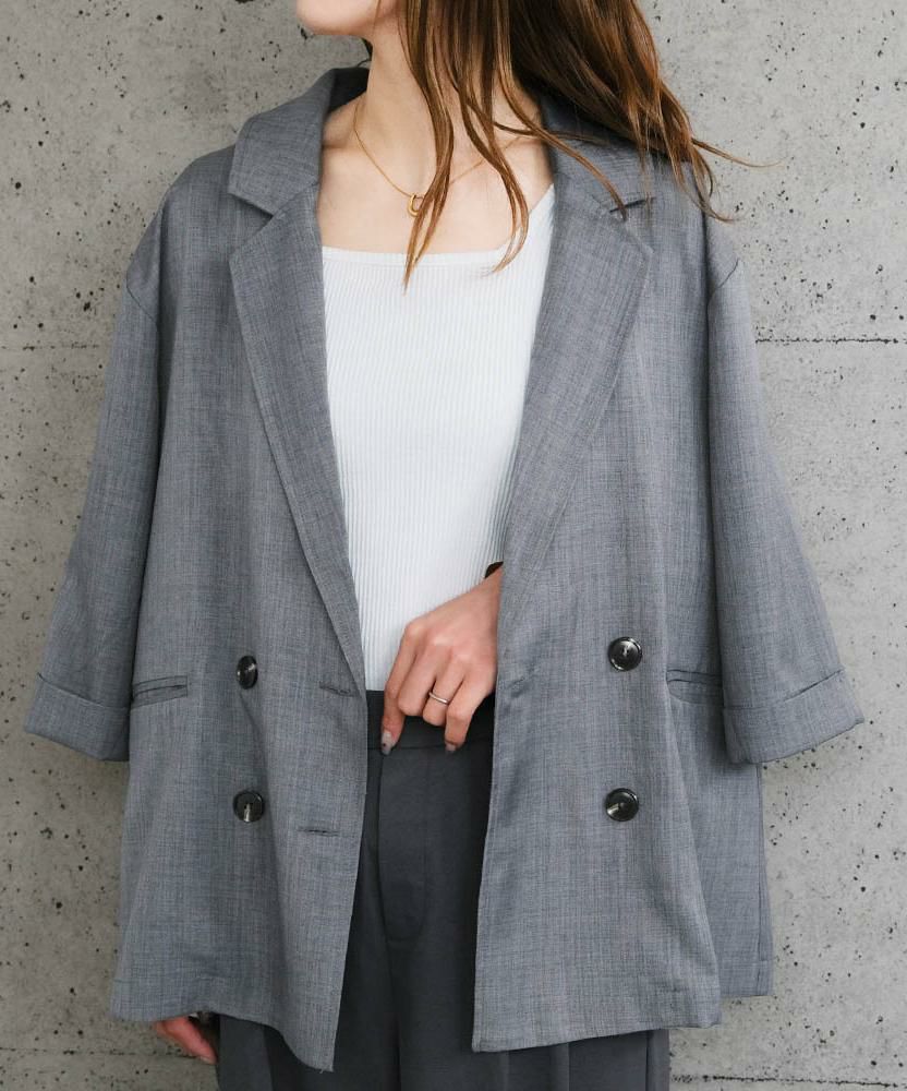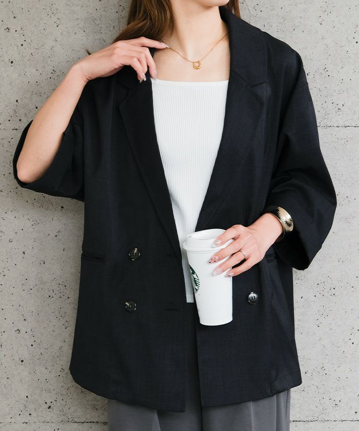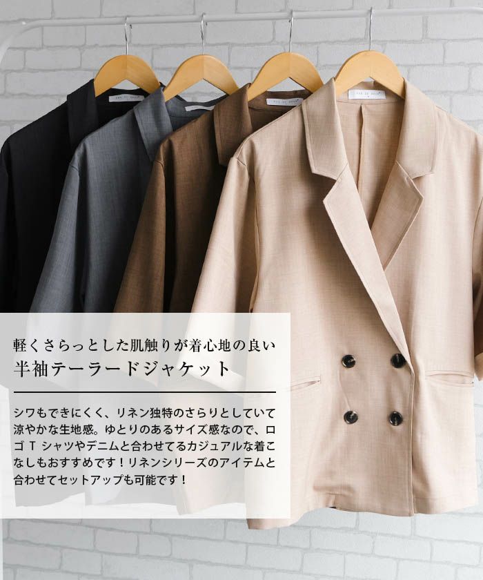 送料無料 リネンライクダブルブレスト半袖テーラードジャケット 春 夏 秋 M |アクアガレージ aquagarage