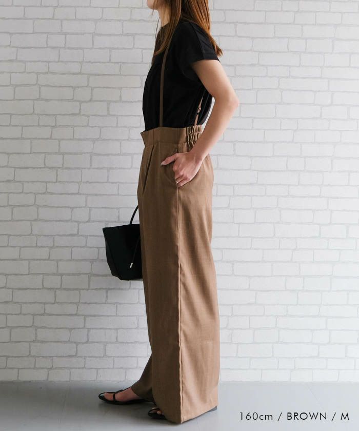 送料無料 リネンライクサスペンダー付きパンツ レディース 春 夏 秋 M ≪ゆうメール便配送30・代引不可≫|アクアガレージ aquagarage