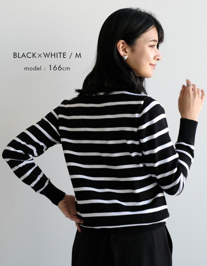 ボーダー柄ニットトップス レディース 春 秋 冬 長袖 | アクアガレージ aquagarage
