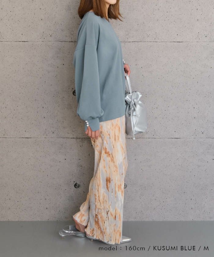 送料無料 梨地Vネック袖口パールカットソー レディース 春 秋 冬 M ≪ゆうメール便配送30・代引不可≫| アクアガレージ aquagarage