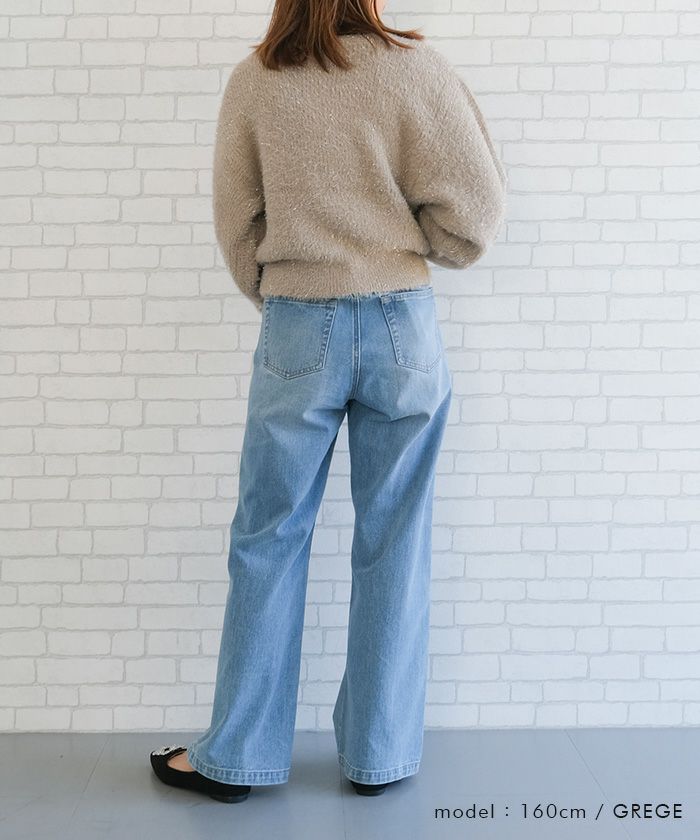 ラメフェザーハイネックショート丈ニットトップス 春 秋 冬 | アクアガレージ aquagarage