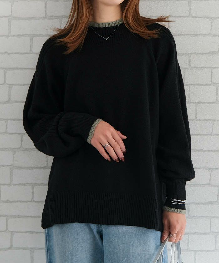 ハイネック切り替えニット レディース 秋 冬 M L | アクアガレージ aquagarage
