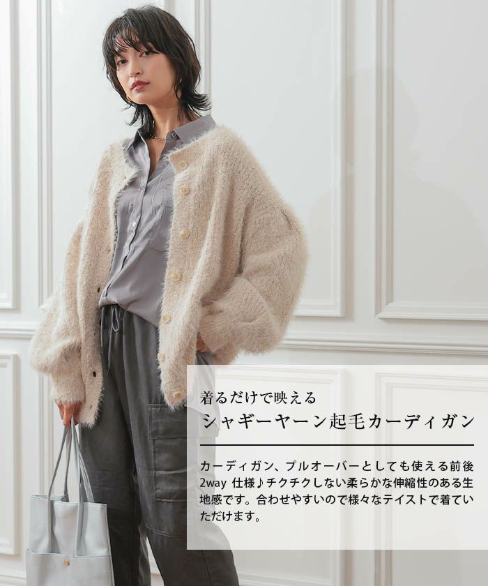 送料無料 ネップ入りシャギーヤーン起毛カーディガン M レディース 春 秋 冬 | アクアガレージ aquagarage