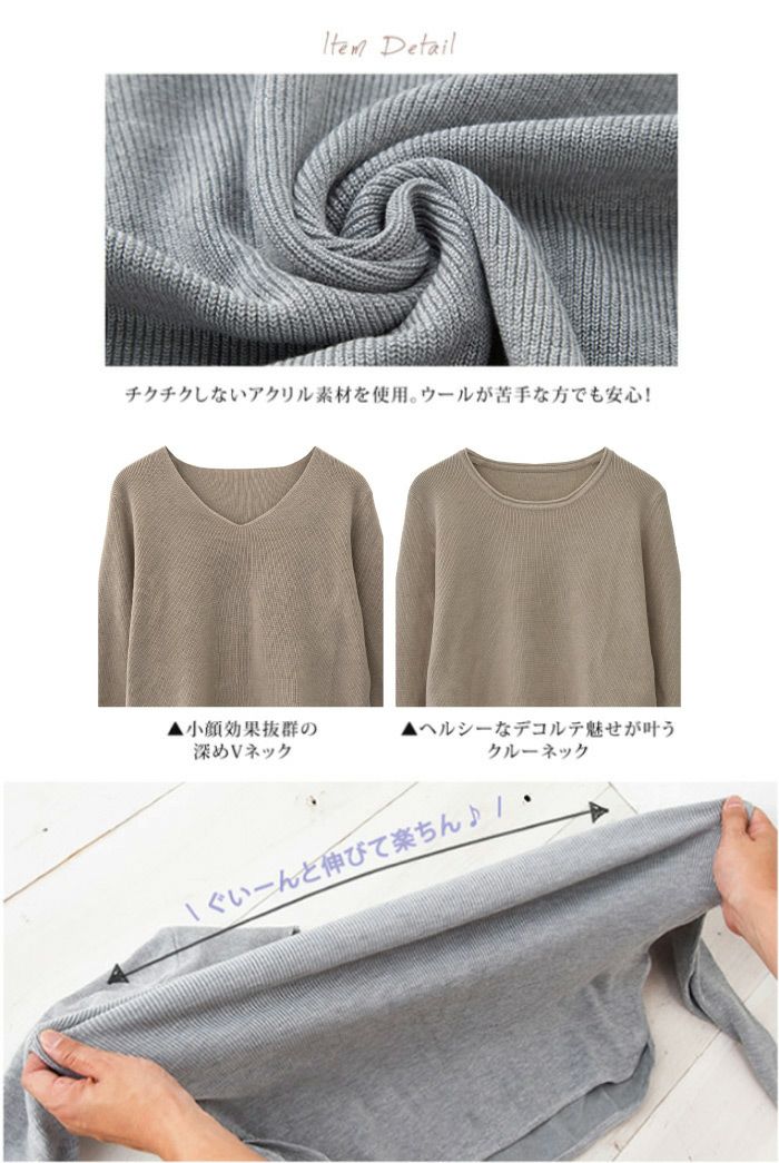 送料無料 3タイプネックのイージーニット 無地 ボーダー薄手 厚手 ≪ゆうメール便配送20・代引不可≫ | アクアガレージ aquagarage