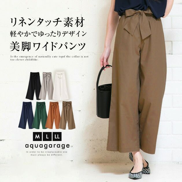 送料無料 クロップド丈リネンブレンド美脚ワイドパンツ ≪ゆうメール便配送30・代引不可≫ | アクアガレージ aquagarage