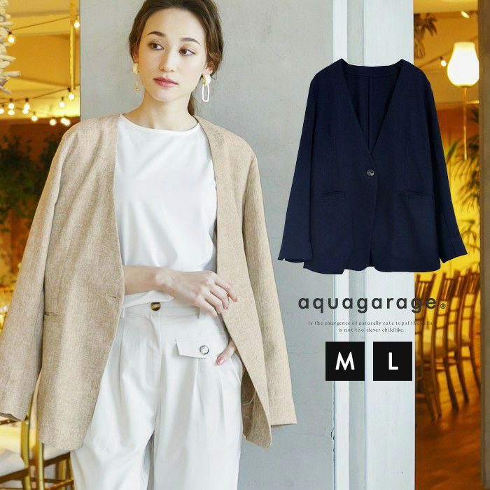 ノーラペルジャケット レディース 長袖 ノーカラージャケット | アクアガレージ aquagarage