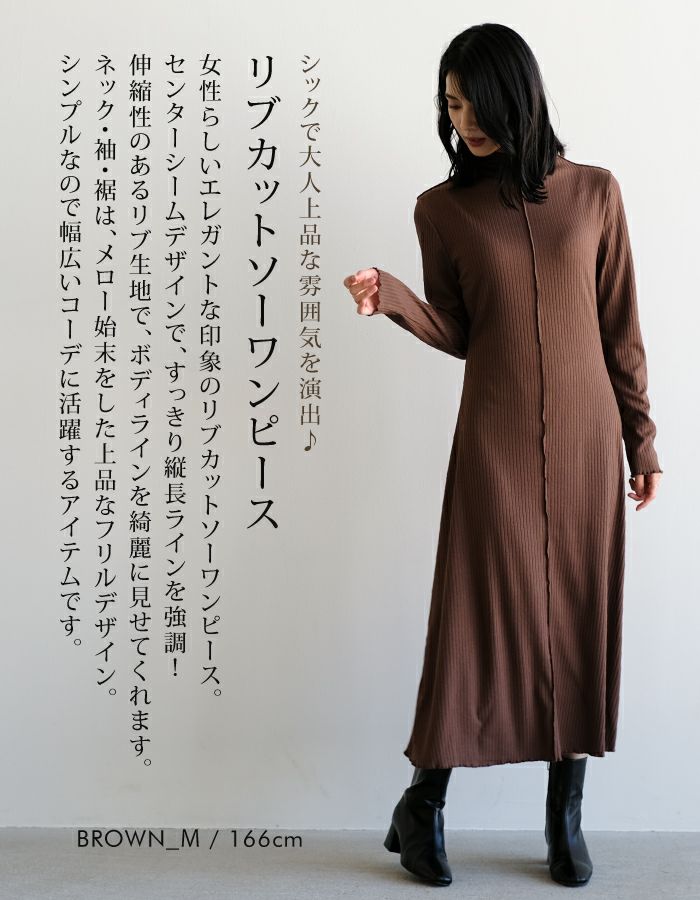 【最終値下げ価格】リブカットソーワンピース レディース 春 秋 M L | アクアガレージ aquagarage