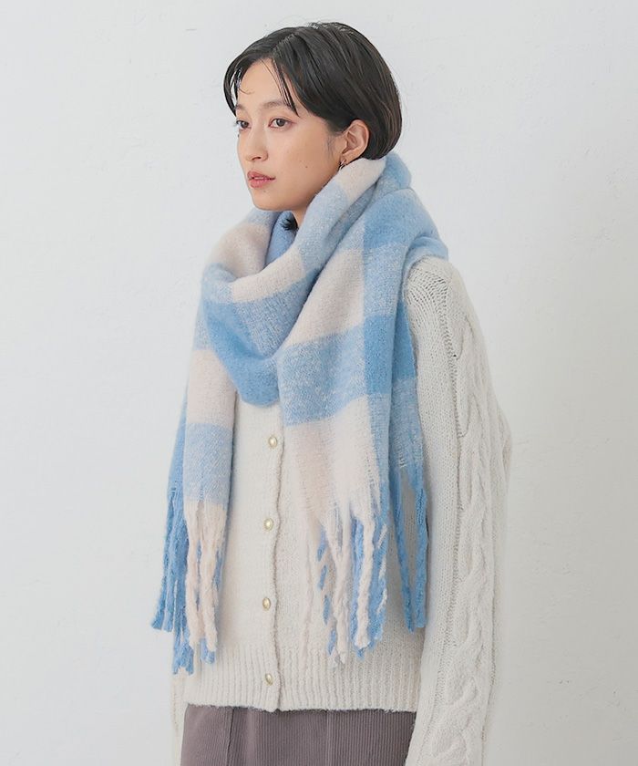 【最終値下げ価格】太フリンジチェック柄マフラー レディース ストール | アクアガレージ aquagarage